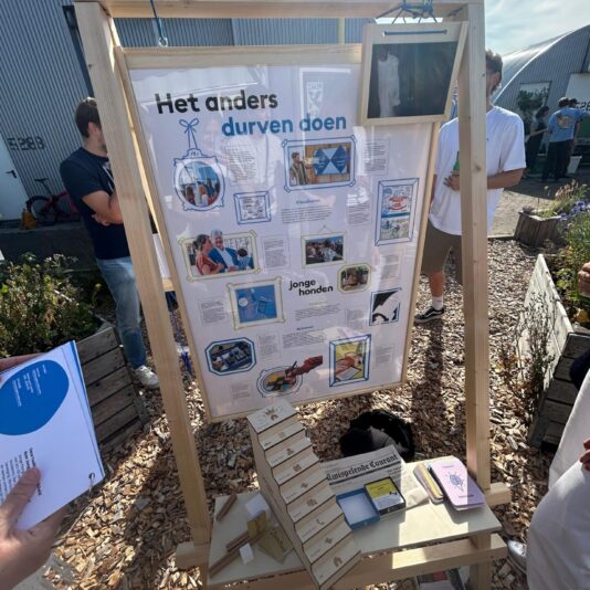 Elke banner zit in een prachtige houten frame die onze verhalen tot leven brengen. Deze frames hebben wij in samenwerking met De Houtstek gemaakt waar duurzaamheid en sociale impact hand in hand gaan. Dit is een werkplaats waar mensen met een psychische kwetsbaarheid de kans krijgen om te re-integreren. Daarnaast zijn alle materialen volledig circulair. De frames zijn zo ontworpen dat we ze een tweede leven geven. En even enthousiast als dat we zijn over de frames, zijn wij over de verhalen die erin zitten.